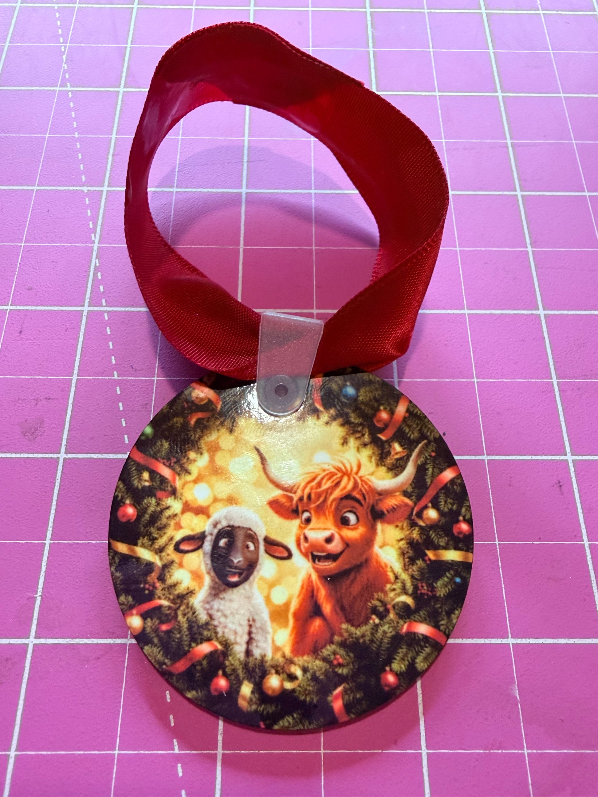 Buddy & Snowball Christmas Decoration, Highland Cow & Lamb