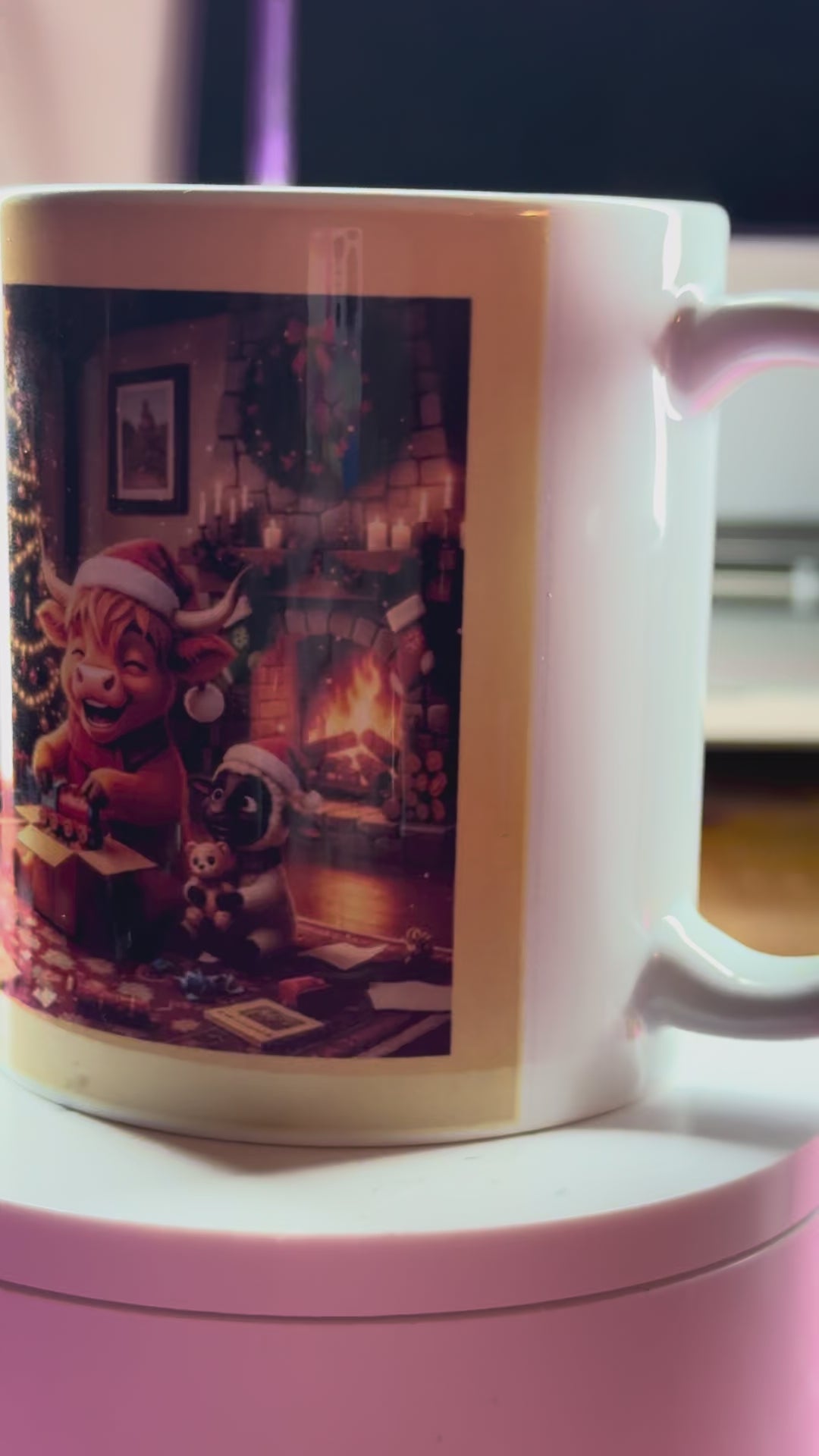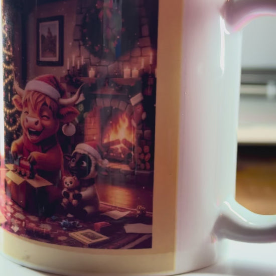 Buddy & Snowball, Christmas Morning, Highland Cow & Lamb, 11oz Mug