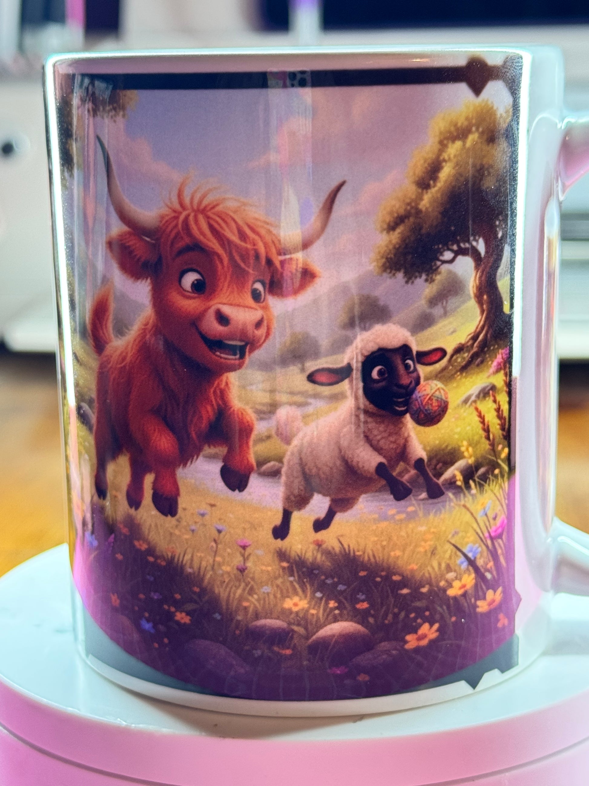 Buddy & Snowball, Countryside Fun, Highland Cow & Lamb, 11oz Mug