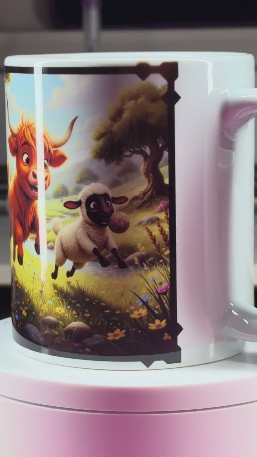 Celebrate the playful spirit of Buddy & Snowball with this charming 11oz mug, handmade using my Cricut Mug Press. This design captures the duo in their element—dashing through sunlit meadows, chasing butterflies, and soaking up the joy of rural life.