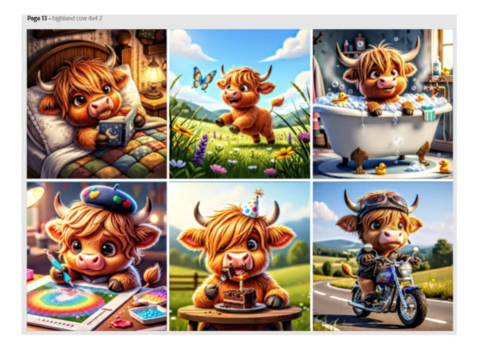 Release Paper, Highland Cow, 24 sections, 4x4, choice of Overlay